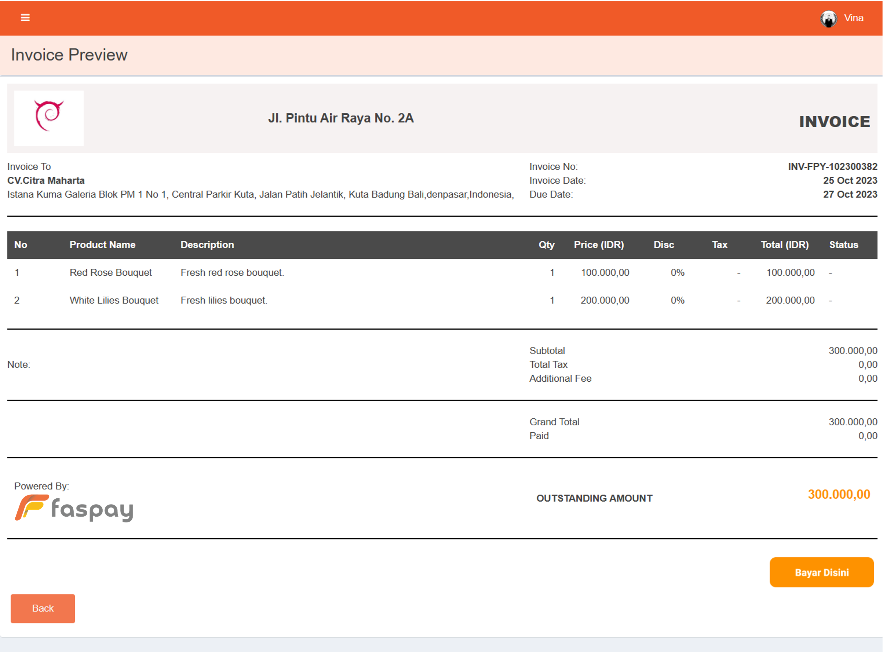 Invoice preview is a feature used to view the result of an invoice created. The following steps explain how to preview an invoice: