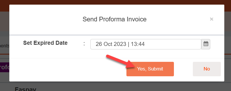 2. The pop-up notification will show the expired date setting of the invoice. Click "**Yes, Submit**" to continue the process.