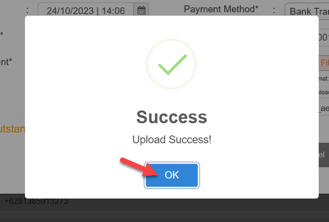 <table><thead><tr><th width="233">Field</th><th>Description</th></tr></thead><tbody><tr><td>Invoice No</td><td>Invoice number</td></tr><tr><td>Outstanding amount</td><td>Outstanding amount pada invoice</td></tr><tr><td>Payment Date</td><td>Payment date</td></tr><tr><td>Payment Method</td><td><p>Payment method option:</p><ul><li>Bank transfer</li><li>Internet Banking</li><li>Write off</li><li>Others</li></ul><p> </p><p><strong>Notes:</strong></p><ul><li>If choose <strong>write off</strong> the channel name it will automatically <strong>Memo</strong> and can't be changes </li><li>If choose <strong>write off</strong> the payment amount can't greater than outstanding amount invoice</li></ul></td></tr><tr><td>Channel Name</td><td>Channel name</td></tr><tr><td>Transaction ID</td><td>Payment reference number</td></tr><tr><td>Payment Amount</td><td>Payment amount</td></tr><tr><td>Upload file</td><td><p>Payment receipt</p><p> </p><p><strong>Notes:</strong></p><ul><li>Accepted file formats include <strong>JPG, PNG, JPEG,</strong> and <strong>PDF,</strong> with a <strong>maximum</strong> upload limit of <strong>10 files</strong>, each with a <strong>size</strong> not exceeding <strong>5 MB</strong>.</li><li>File thas has been uploaded can’t be deleted</li></ul></td></tr></tbody></table>
