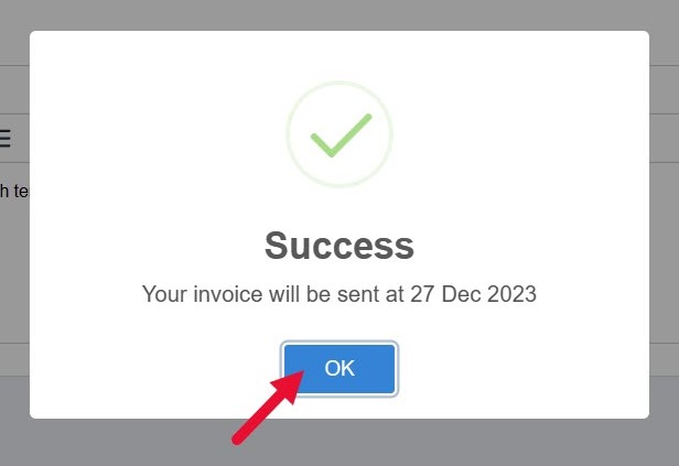 4. If the data is successfully submitted, it will display a success notification as follows, click **OK**. The invoice will be sent to customer's email as scheduled.