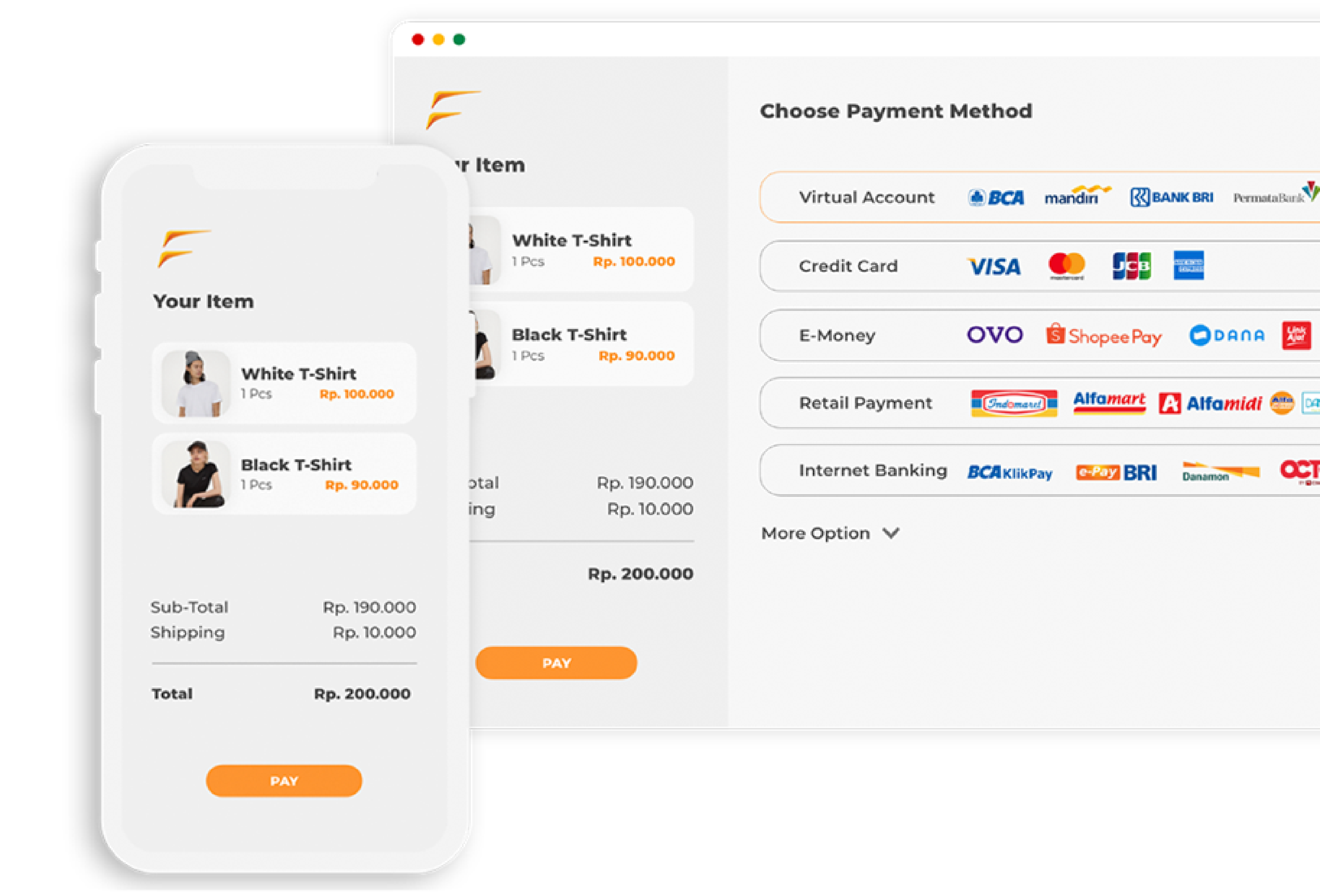 Faspay Business allows your online business to receive payment online, you can choose between Credit or Debit Channels, ranging from Internet Banking, Mobile Banking, Virtual Accounts, e-money, Retail Payment, and Credit Cards to Online Credit.