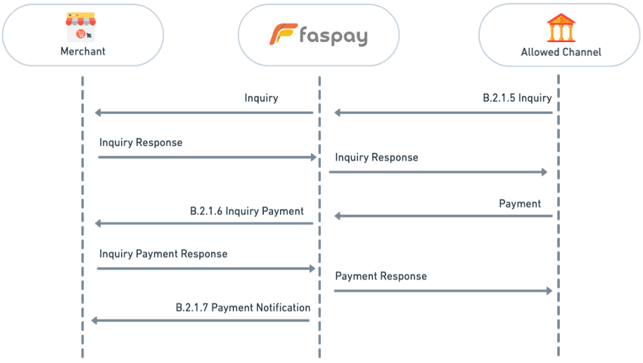 After the customer checks the transaction ID and proceeds to the payment, Faspay goes inquiry payment via URL inquiry merchants to provide transaction information that has been paid by the customer in which the value of the amount is the same (for the type of close amount) or the value of the amount is different (for the type of open amount) with the value of the transaction amount. Merchants will respond to Faspay that the transaction is approved or disapproved by the merchant. If the merchant declines the transaction, the customer UI display will show that the transaction failed, and if the merchant approves the transaction, the customer UI display will show the success of the transaction.