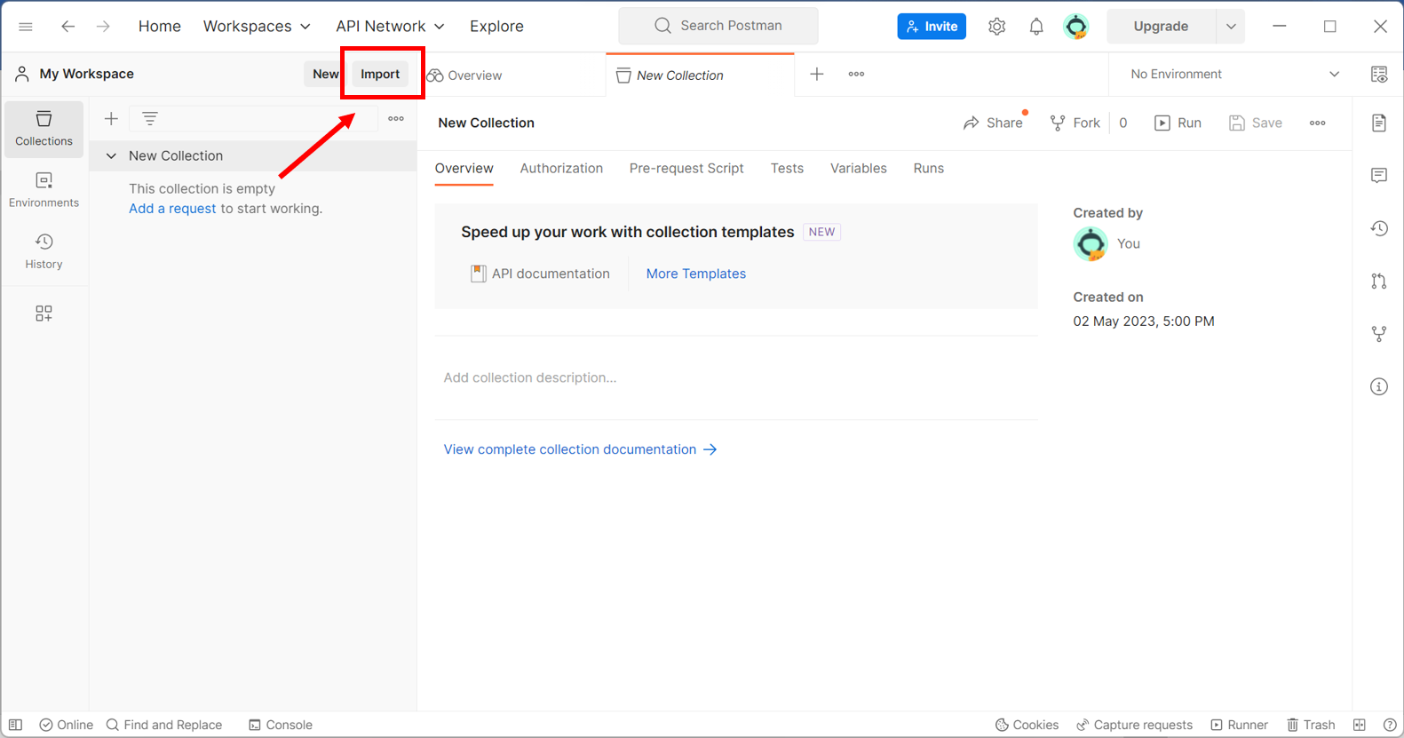 The file will automatically be imported into the Postman collection.