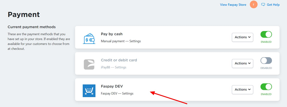 10. After finished fill the form click **\<Back,** and the Faspay Payment Gateway has been successfully added.