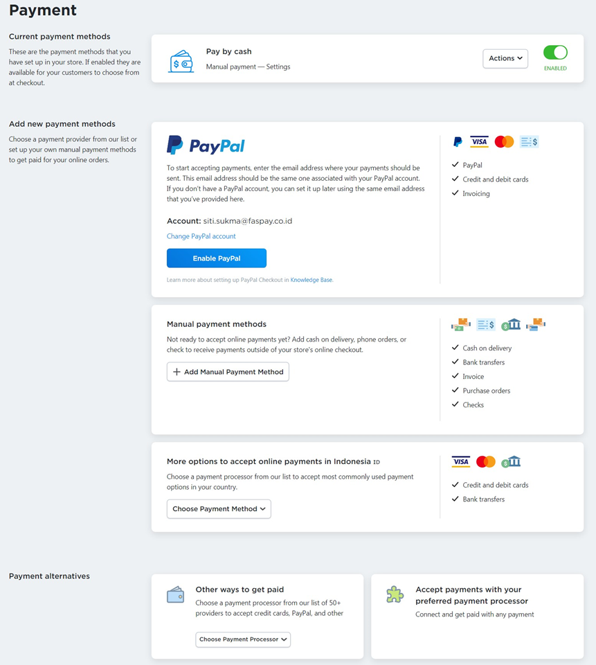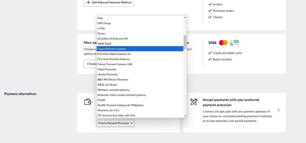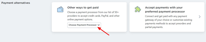 4. On **Payment alternatives,** at **Other ways to get paid** click **Choose Payment Processor.**