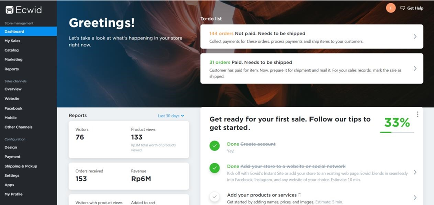 2. After successfully login, will show Dashboard page ECWID.&#x20;