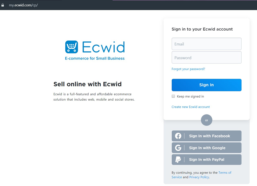 1. Merchant Login to [ https://my.ecwid.com/cp/](https://my.ecwid.com/cp/).
